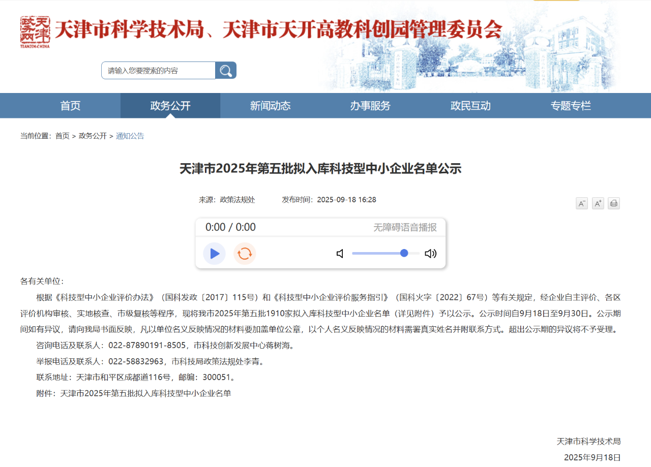 2025年9月18日,天津市科学技术局公布了天津市2025年第五批拟入库科技型中小企业名单。热烈祝贺天津高端精密仪器产业园2家园区企业名列榜单!