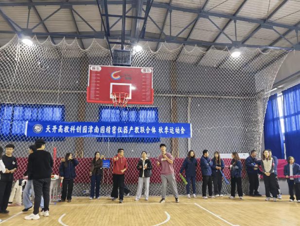 最终,天开津南园精密仪器产教联合体理事长单位代表-海河教育园区管理委员会产教融合部副部长魏楠上台致辞,她提到:“日常咱们联合体成员们一起在产教融合的赛道上技术攻关破难题,今天咱们在这场“家庭聚会”中,一起来比一比投篮准度、接球反应度、接力速度、拔河力度!期待大家在这次运动会中收获开心,斩获佳绩!我宣布本次联合体秋季运动会各赛项正式启动”。随着一声令下,篮球赛、接力跑、羽毛球赛三大赛项同步开启,运动员们迅速奔赴赛场。