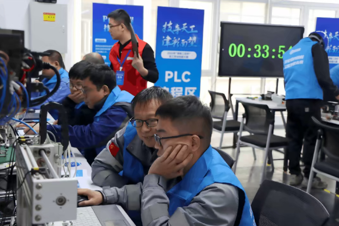 立足区域产业发展需求,本次大赛设置了PLC编程与电工两大核心竞赛项目,吸引了来自全区14家企业工会的43名技术精英同台竞技。比赛现场,选手们全神贯注,一丝不苟。在PLC编程赛区,键盘敲击声与逻辑思维无声碰撞;在电工操作赛区,工具的使用与电路的排布尽显娴熟技艺。他们用专注的神情和精湛的技艺,完美诠释了新时代工匠精神的深刻内涵。
