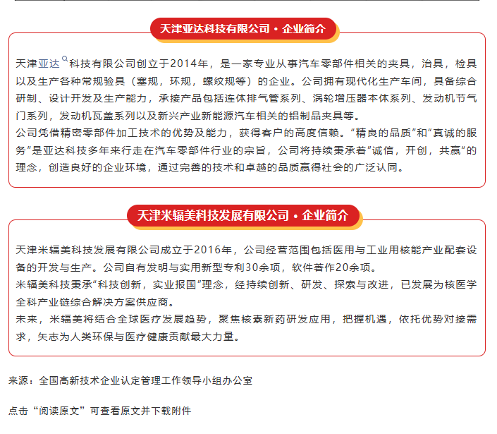 近日,全国高新技术企业认定管理工作领导小组办公室发布了对天津市认定机构2025年认定报备的第一批高新技术企业进行备案公示的通知。热烈祝贺天津高端精密仪器产业园2家园区企业名列榜单!