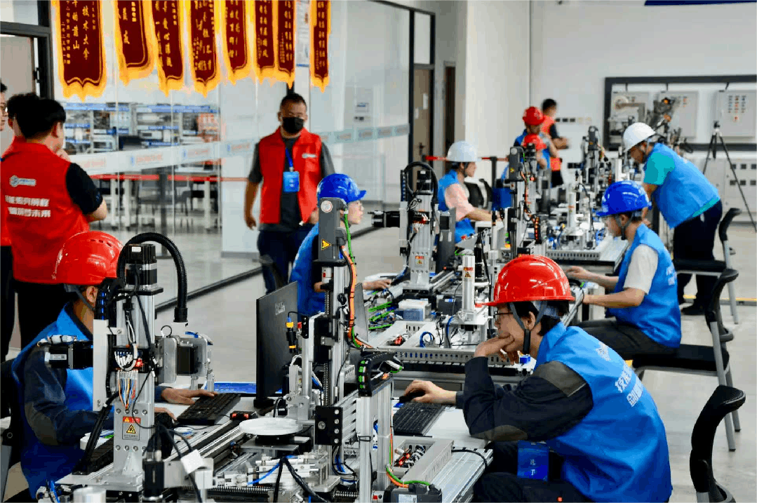 其中包括:艾洛克与天津电子技师学院携手,在人才联合培养、产品小试领域双向发力,加速科技成果转化落地;艾莫斯与天津职业大学达成合作,开展技术人员定制化培养,推动检测设备共研升级;剑儒联合天津机电职业学院举办“第一届剑儒杯智能制造产线装调技能大赛”,吸引全市12所高校20支代表队同台竞技,实现专本硕学子同台竞技盛况;钛极智能与天津商务职业学院开展产教课题共研,借助广告学专业智库力量,为企业品牌宣传推广提供创新方案等;各项产教融合以及校企协同的生动实践,为产业升级注入了源源不断的智慧动能。