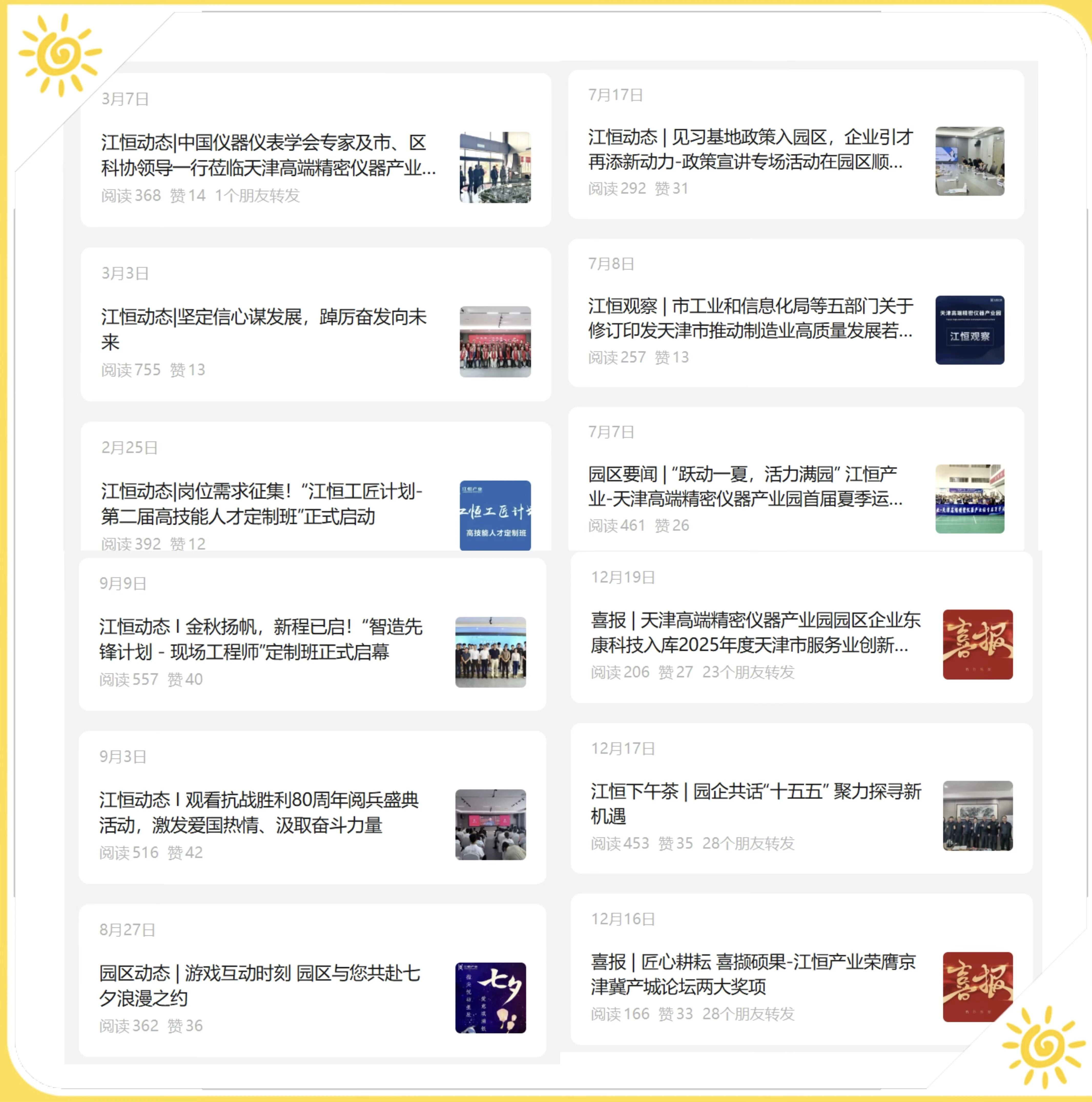 一系列宣传举措,不仅让园区企业及时掌握最新资讯,更有效提升了天津高端精密仪器产业园以及园区企业的品牌知名度,吸引了更多优质资源向园区汇聚。