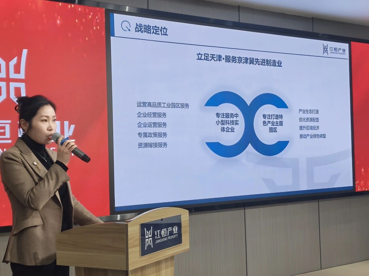 产业运营服务中心张秋玲详细介绍了江恒产业集团为入驻企业提供的全方位运营服务支持。从企业落地到成长赋能,江恒产业集团始终秉持“从企业中来,到企业中去”的服务理念,助力中小科技实体企业稳步发展。