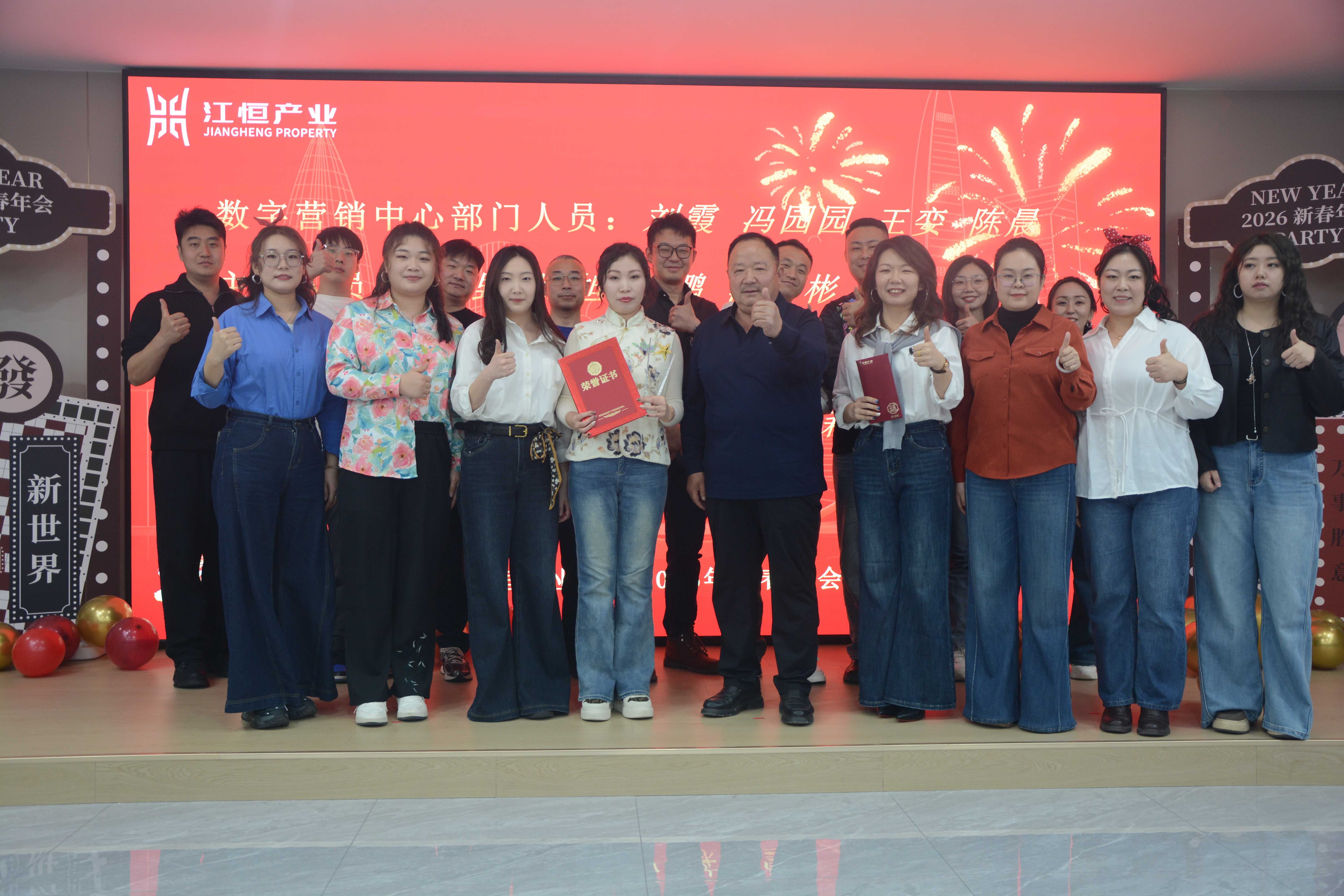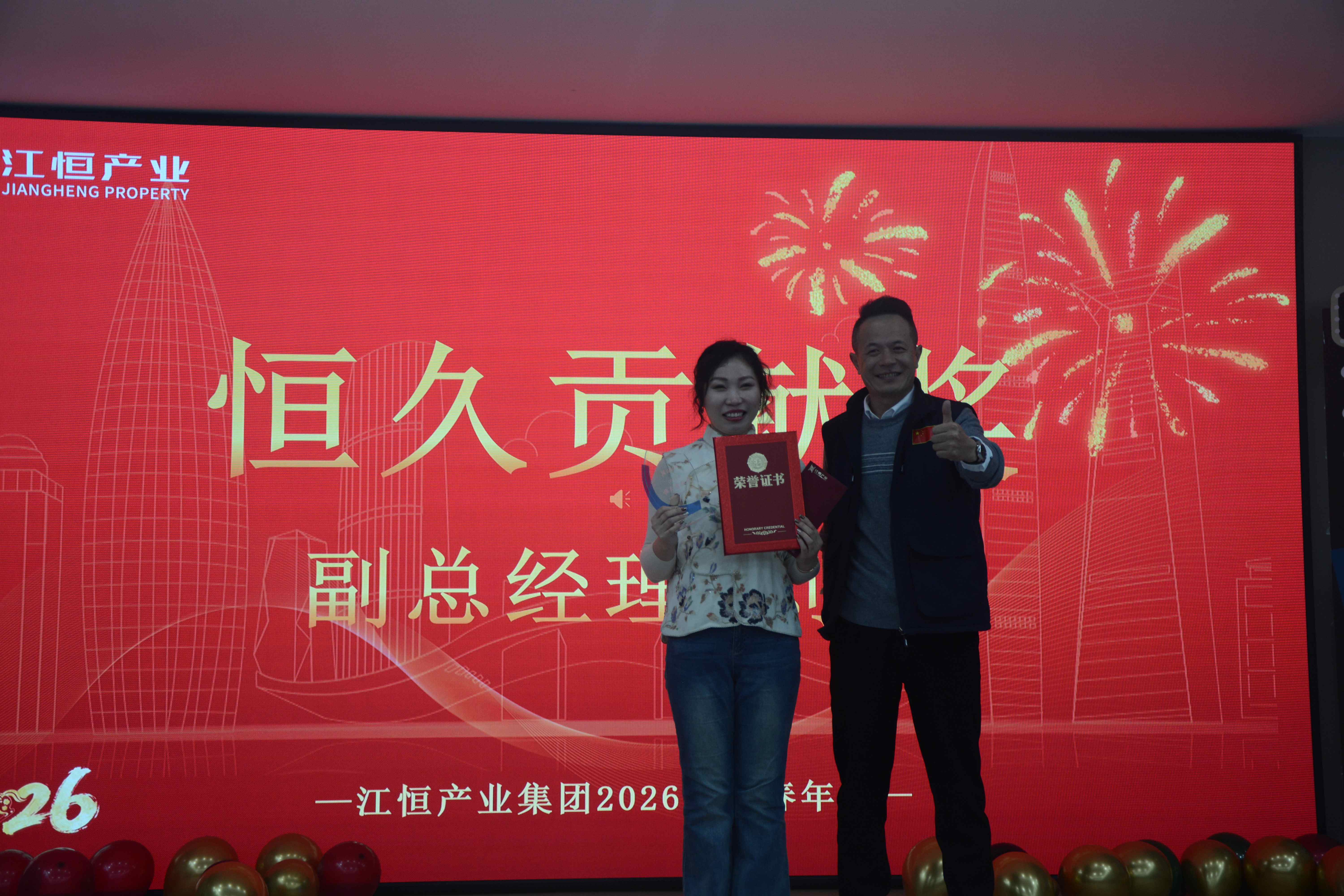星光不问赶路人,时光不负奋斗者。五年同行,总有一群人以坚守诠释担当,以专业铸就荣光。本次年会隆重颁发了优秀个人:招商先锋奖、招商进步奖、优秀员工奖、主动担当奖、突出贡献奖、恒久贡献奖,致敬每一份全力以赴,致敬每一份默默坚守。随后继续颁发团体奖:优秀协作服务奖、优秀创新团队奖,江恒建设团队获得优秀协作服务团队,以高效协同、用心服务凝聚合力,在岗位上默默坚守、全力保障,成为企业稳健前行的坚实后盾;产招中心数字营销团队获得优秀创新团队,以新思路、新举措破局前行,用创新驱动发展,以实干主动拥抱时代变化,为江恒产业集团注入强劲动能,你们是江恒的骄傲,更是前行路上最耀眼的光。