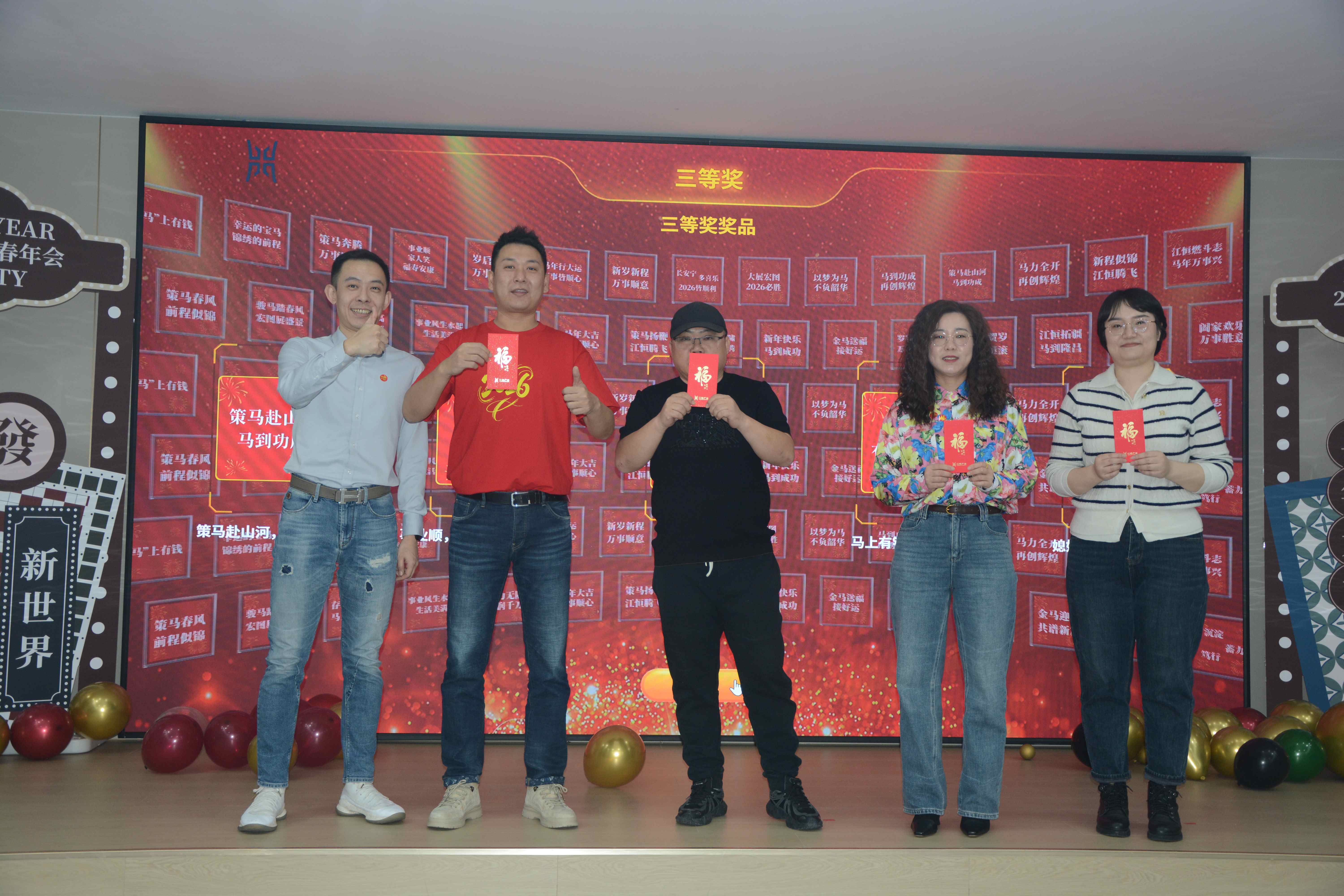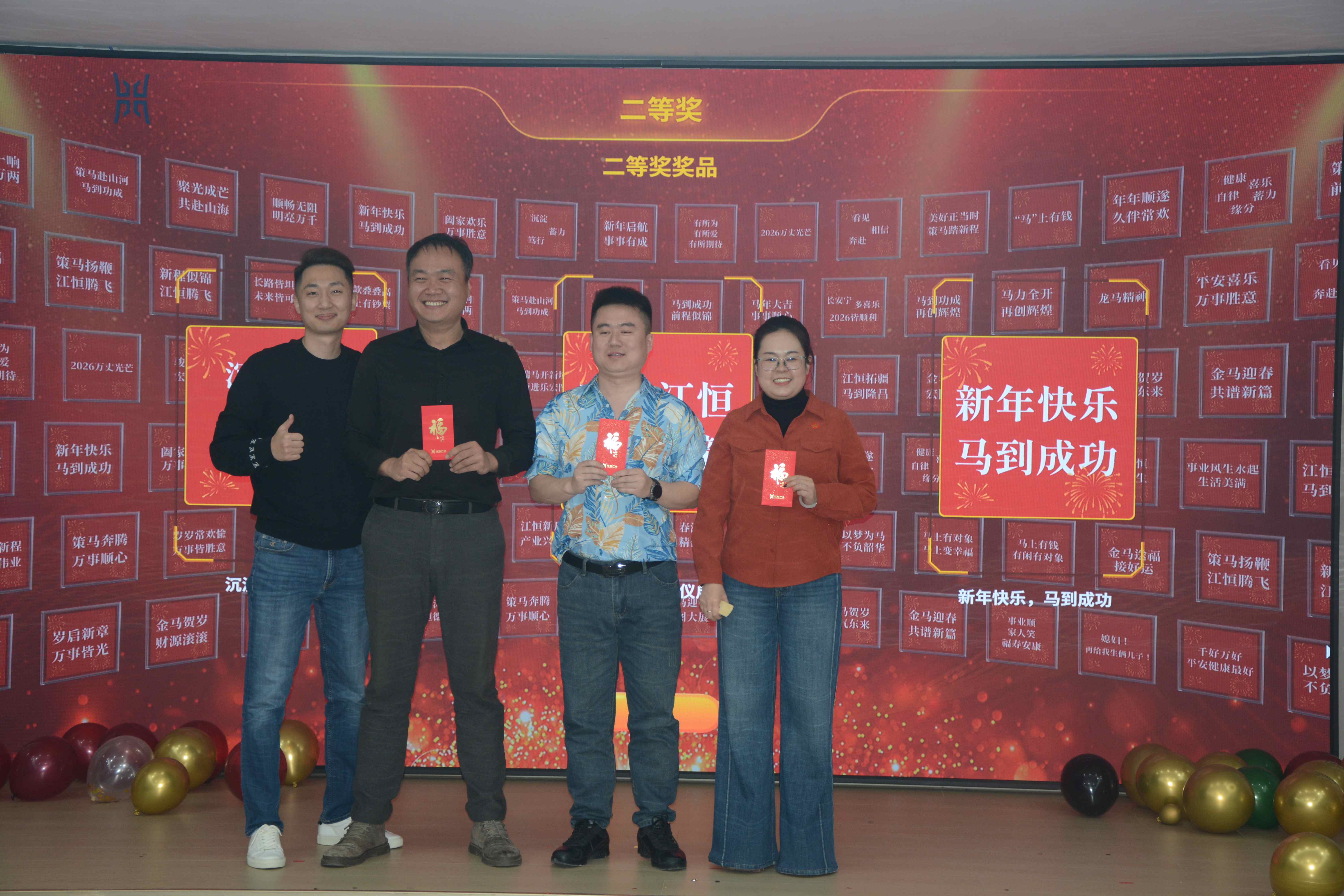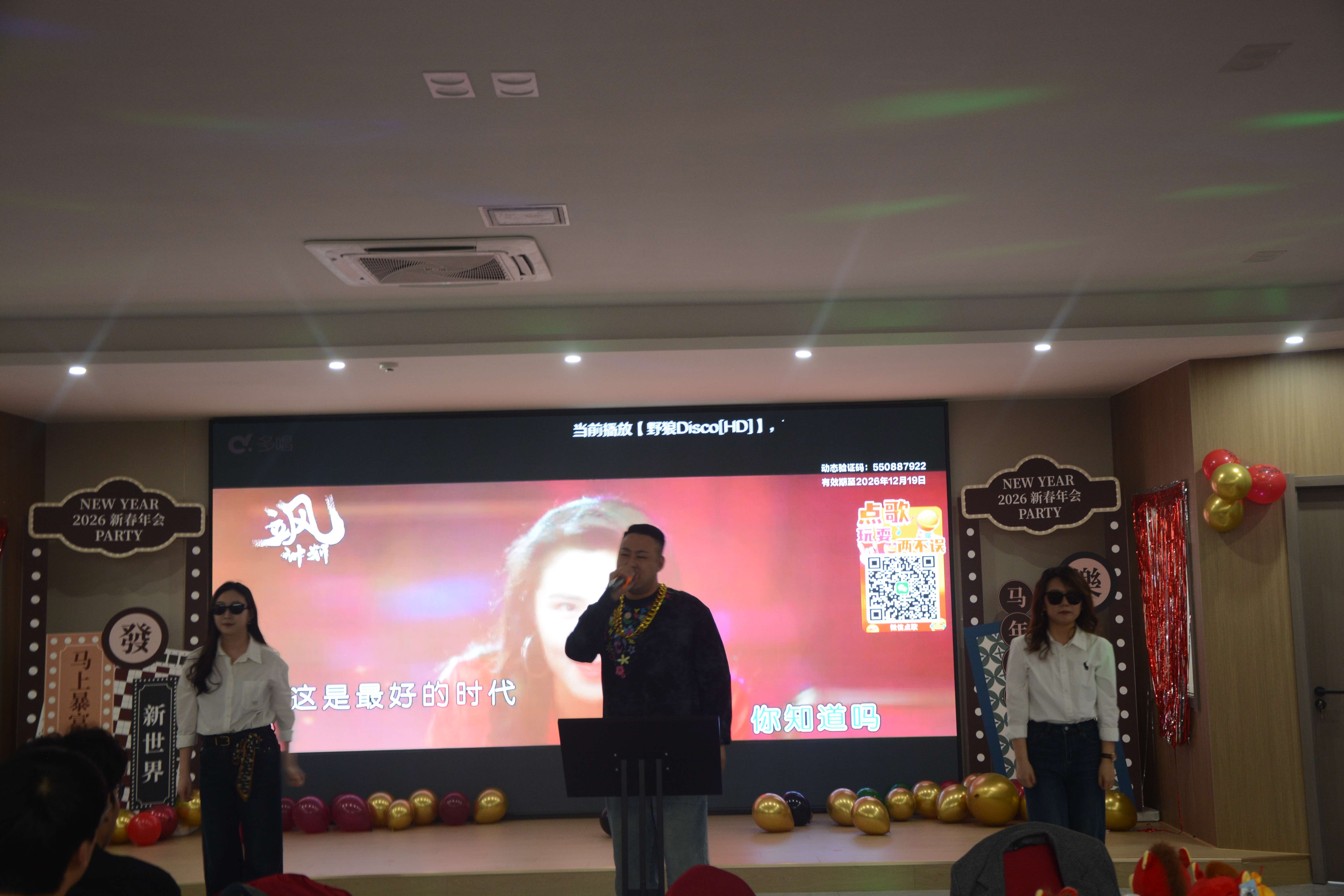 复古风华,燃动全场。本次年会以复古风潮为主题,带来了一场活力四射、情怀满满的视听盛宴。一曲曲经典旋律轮番唱响,一支支舞蹈气场拉满。动感十足的《野狼disco》燃爆全场;伙伴们卸下平日的严谨,带着舞蹈《白龙马》展现亲切可爱;《青苹果》舞蹈尽显青春风采;一曲《最爱》娓娓道来;江恒F4深度还原《流星花园》MV;趣味小剧场笑点十足;一首军歌气势磅礴;快板《夸夸江恒的你我他》,感受江恒大家庭的和睦与欢畅;一首《珊瑚颂》,余韵悠长,为整场年会的节目环节带入高潮;伴随《恭喜发财》的欢乐节奏,许下新年的美好愿望……