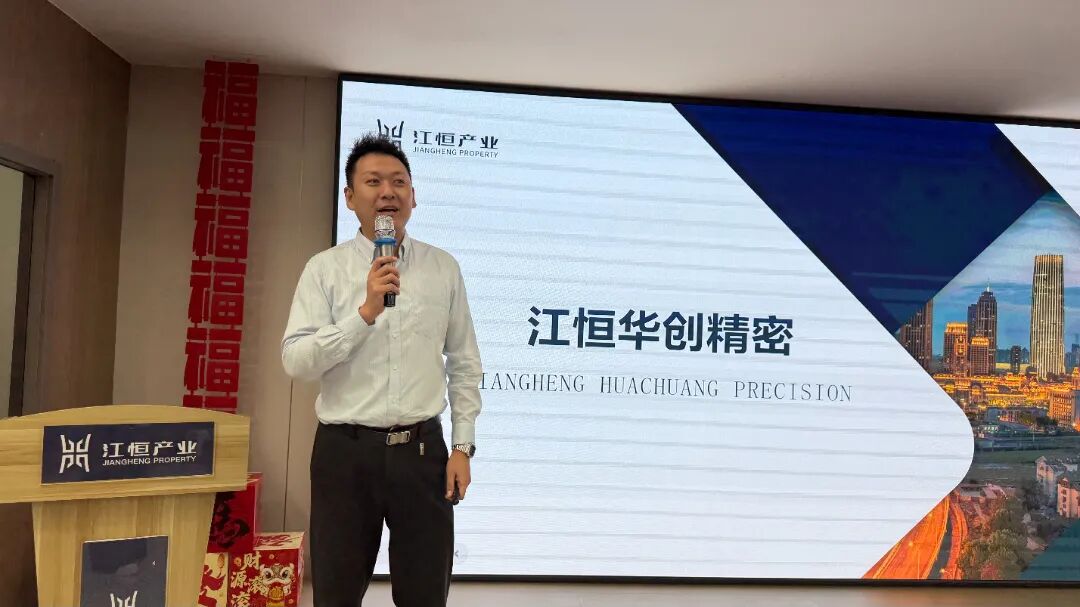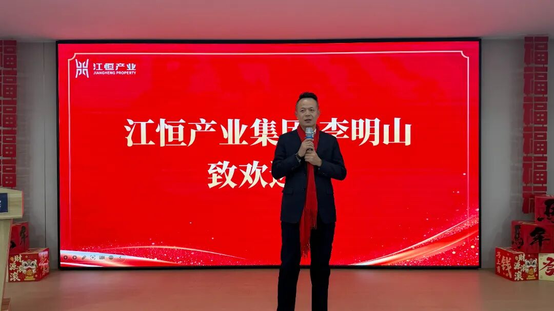 江恒产业集团总经理李明山上台致欢迎词,他深情回顾了往年园区发展成果,一、二期已汇聚70余家优质企业,产业链协同效应显著;展望2026年,园区三期将于6月交付,届时将形成百余家科技制造企业齐聚的完善产业集群,成为园区各企业发展的核心阵地。李总表示,园区将始终坚定与企业共生共荣的发展初心,与企业同心同行,持续以优质服务护航企业高质量发展。