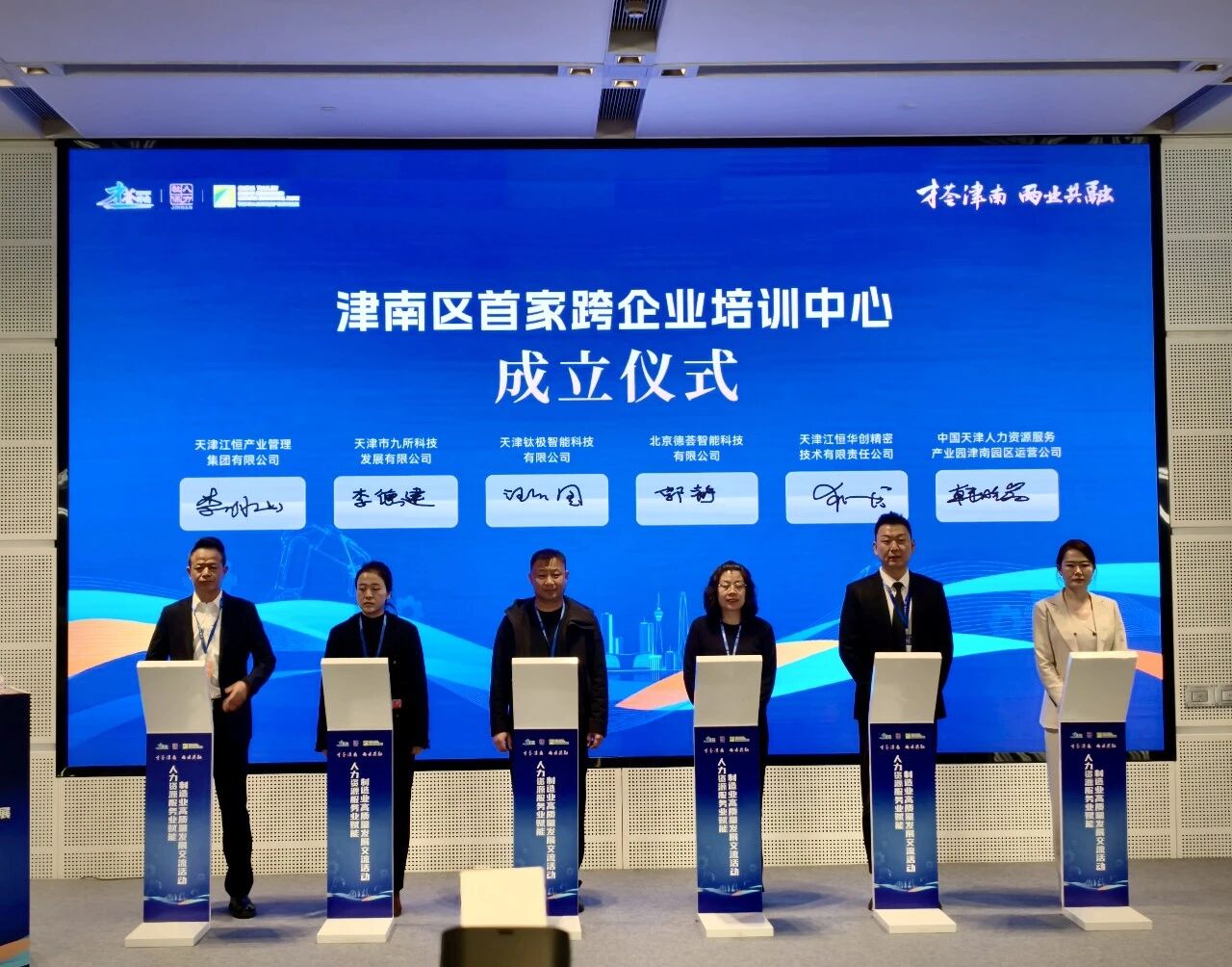 在筑牢标准化人力资源服务根基的同时,江恒产业-天津高端精密仪器产业园全力推进技能人才精准培育。园区联合人力资源机构,园区优质企业九所科技、钛极智能、德荟智能、华创精密作为企业代表参与此次签约,成立津南区首家跨企业培训中心-“江恒技能”跨企业培训中心。该中心聚焦企业技术难题与岗位缺口,联合全区制造企业共建案例库、共享设备资源、共推补贴政策,实现精准育才、高效赋能。